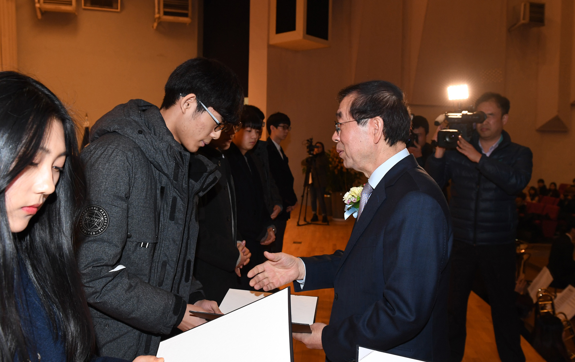 박원순 서울시장이 28일 서울 동대문구 서울시립대학교에서 열린 2017학년도 입학식에 참석해 축사를 하고 있다. 서울시 제공