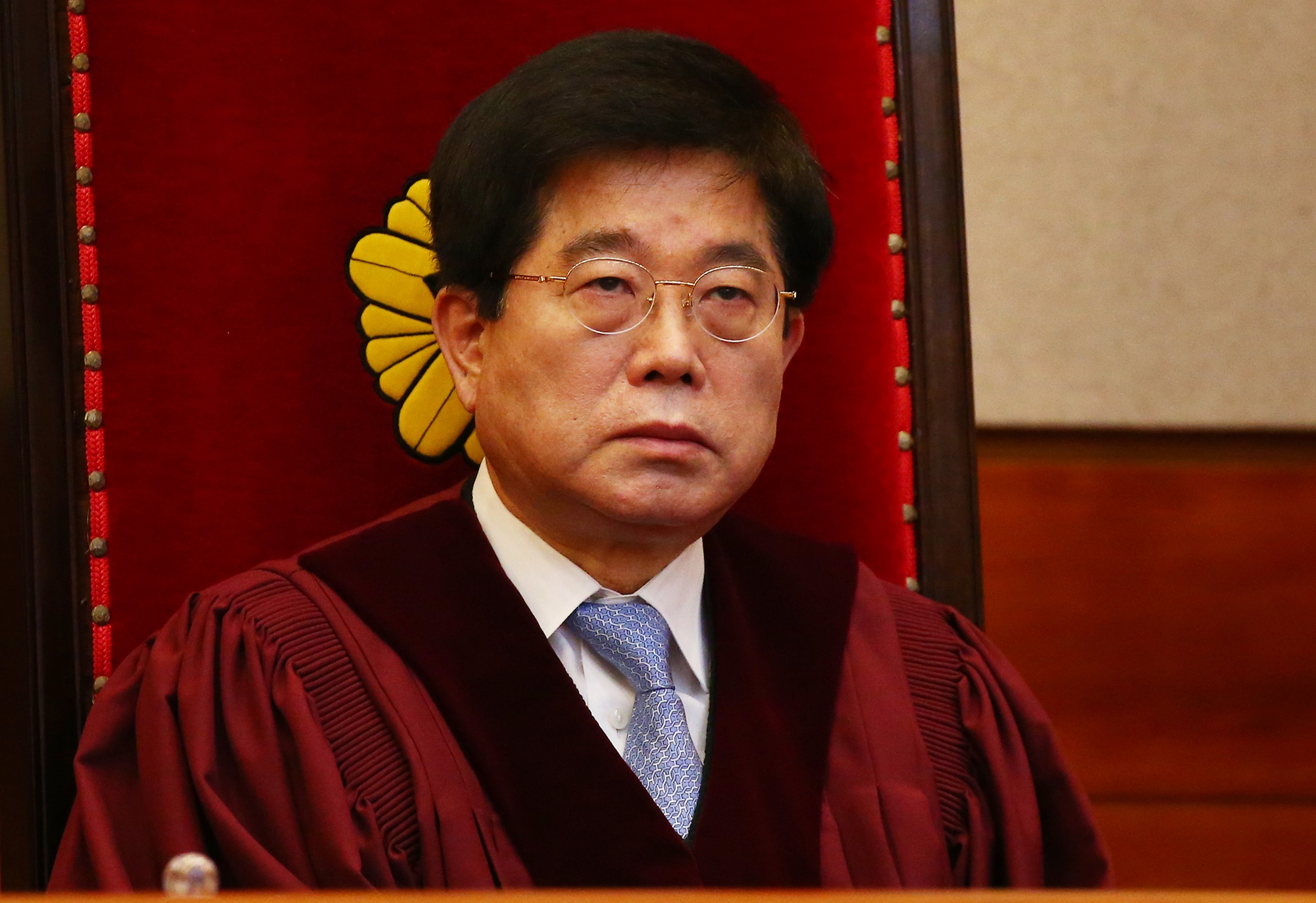 10일 오전 서울 종로구 재동 헌법재판소에서 열린 박근혜 대통령 탄핵심판 최종 선고에서 서기석 재판관이 이정미 소장 대행의 선고 주문을 듣고 있다.