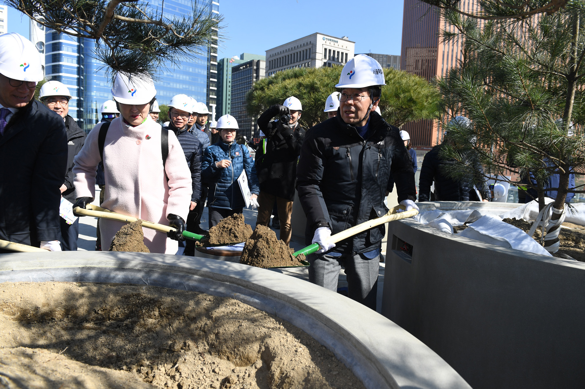 시민들의 휴식공간 '서울로 7017' 마무리 공사가 한창인 가운데 지난 6일 박원순 서울특별시장이 조성현장을 찾아 시설물 및 공사현장을 살피고 있다. 서울시 제공