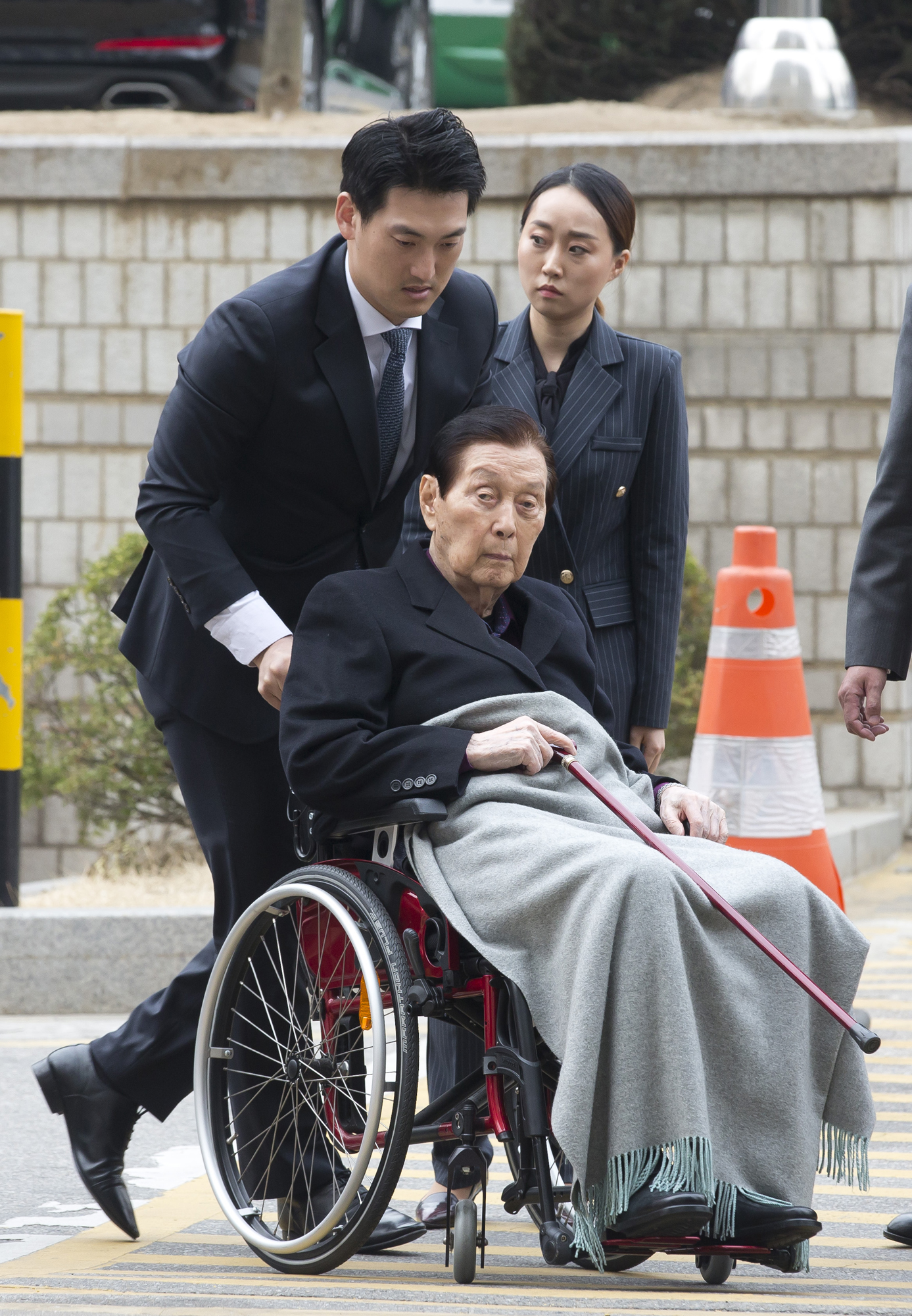 [서울=eoimage] 임준선기자 =신격호 롯데그룹 총괄회장이 20일 오후 서초동 서울중앙지법에서 열리는 롯데그룹 사건의 첫 재판에 출석하고 있다