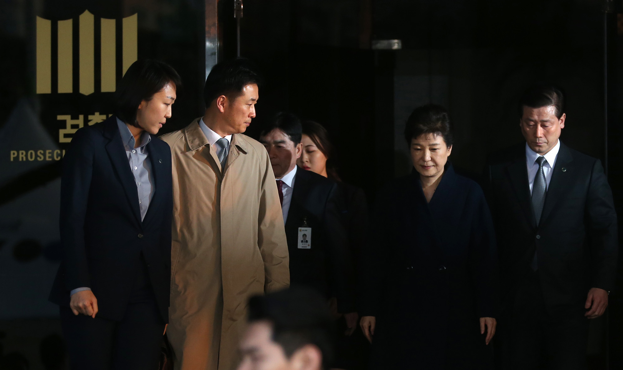 '비선 실세' 최순실씨의 국정농단 공모, 뇌물수수 등 13가지 혐의를 받고 있는 박근혜 전 대통령이 22일 오전 검찰조사를 마치고 서울 서초구 서울중앙지검 청사를 나서고 있다.