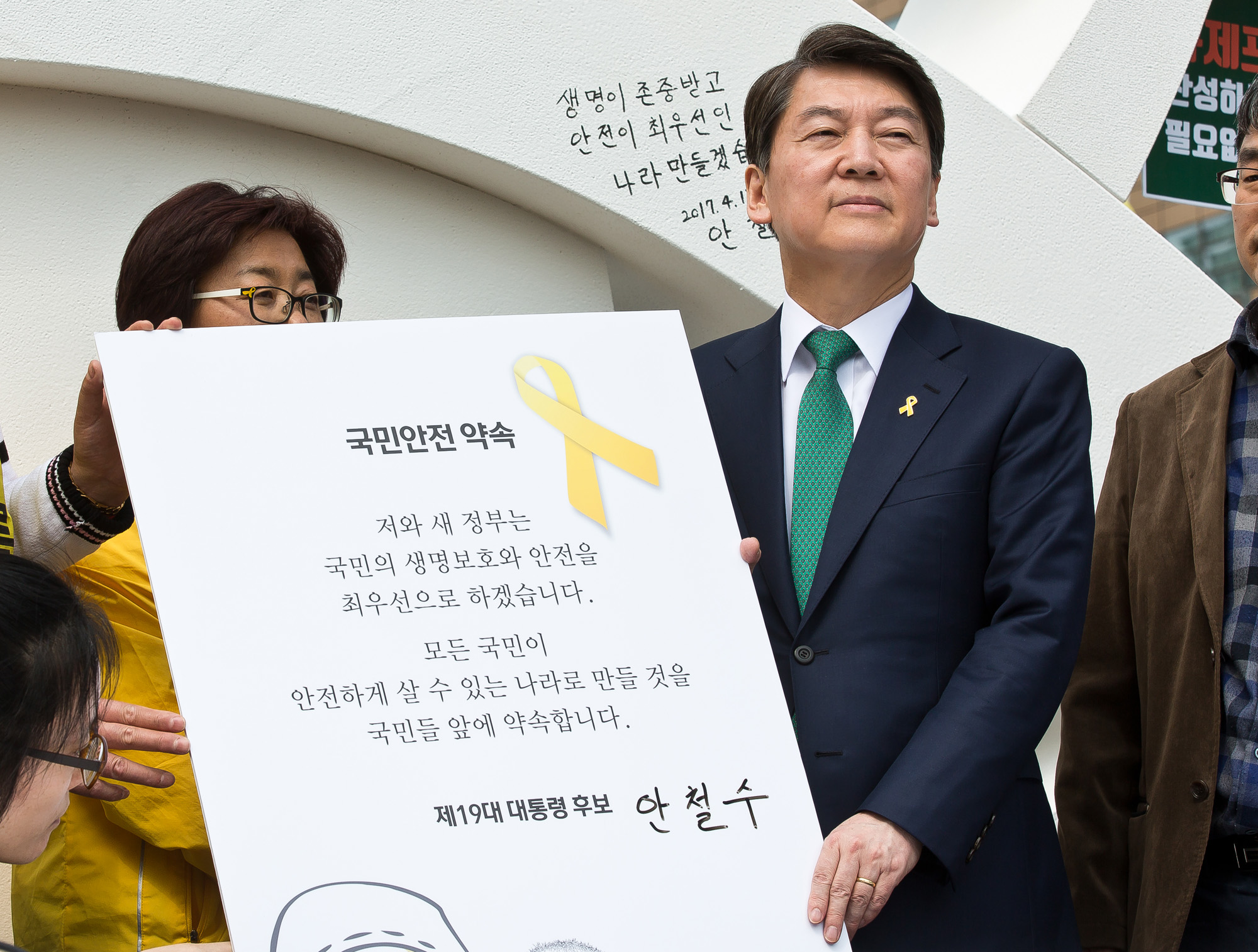 | 사진설명 | [서울=eoimage] 최준필 기자 = 안철수 국민의당 대선 후보가 13일 오후 서울 광화문 광장에서 열린 세월호 3주기 추모 '생명 존중 안전사회를 위한 대국민 약속식'에 참석해 서명한 약속문을 들고 있다. 17.04.13. eomaster@eoimage.com |
