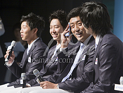 [서울=eoimage]박은숙기자=29일 오후 서울 섬유센터에서 하정우,김동욱,김지석,최재환등 배우들이 참석한 가운데 스키점프를 소재로 한 영화'국가대표'의 제작보고회가 열렸다.