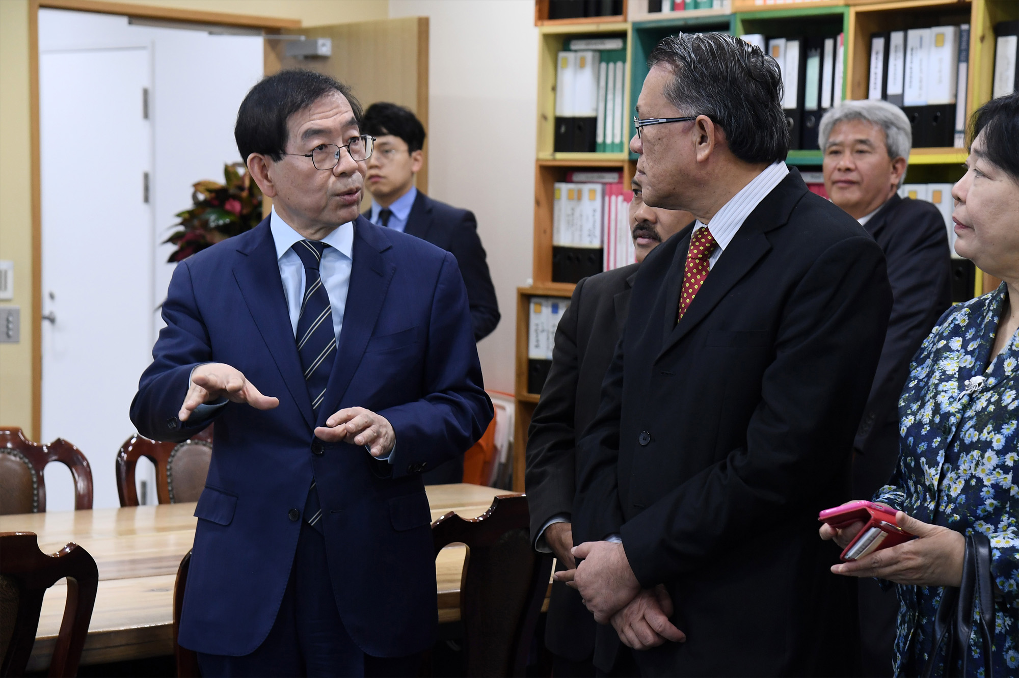 박원순 서울시장은 21일 서울시청에서 다툭 세리 하지 모하마드 아민 노르딘(Datuk Seri Hj Mhd Amin Nordin) 말레이시아 쿠알라룸푸르 시장 등 대표단을 만나고 있다. 서울시 제공