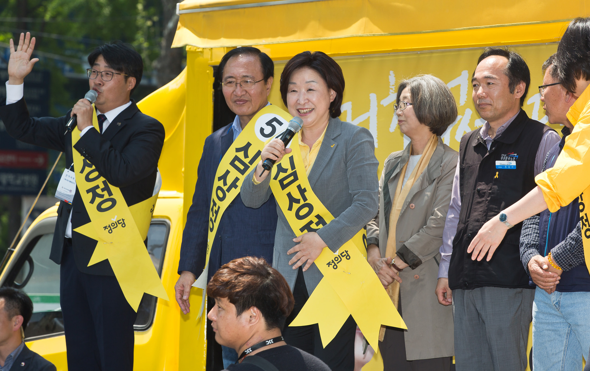 [서울=eoimage] 최준필 기자 = 심상정 정의당 대선후보가 1일 오후 서울 종로구 연건동 대학로 마로니에공원에서 시민들에게 지지를 호소하고 있다. 17.05.01. eomaster@eoimage.com