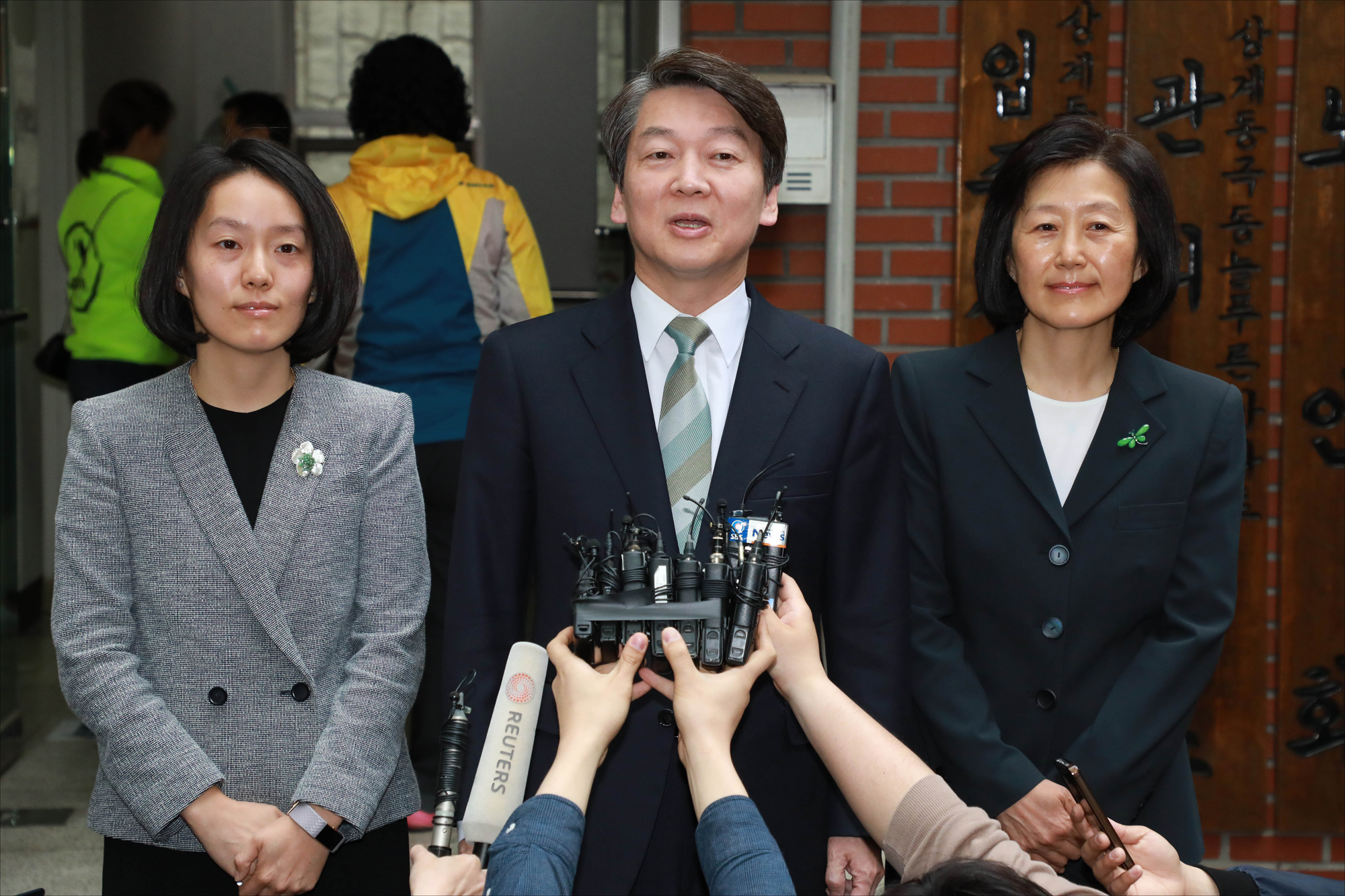 안철수 국민의당 대선후보가 제19대 대통령 선거일인 9일 오전 서울 노원구 상계1동 제7투표소에서 투표를 마친 뒤 취재진의 질문에 답변하고 있다.2017.05.09 사진/임준선기자(현장풀)