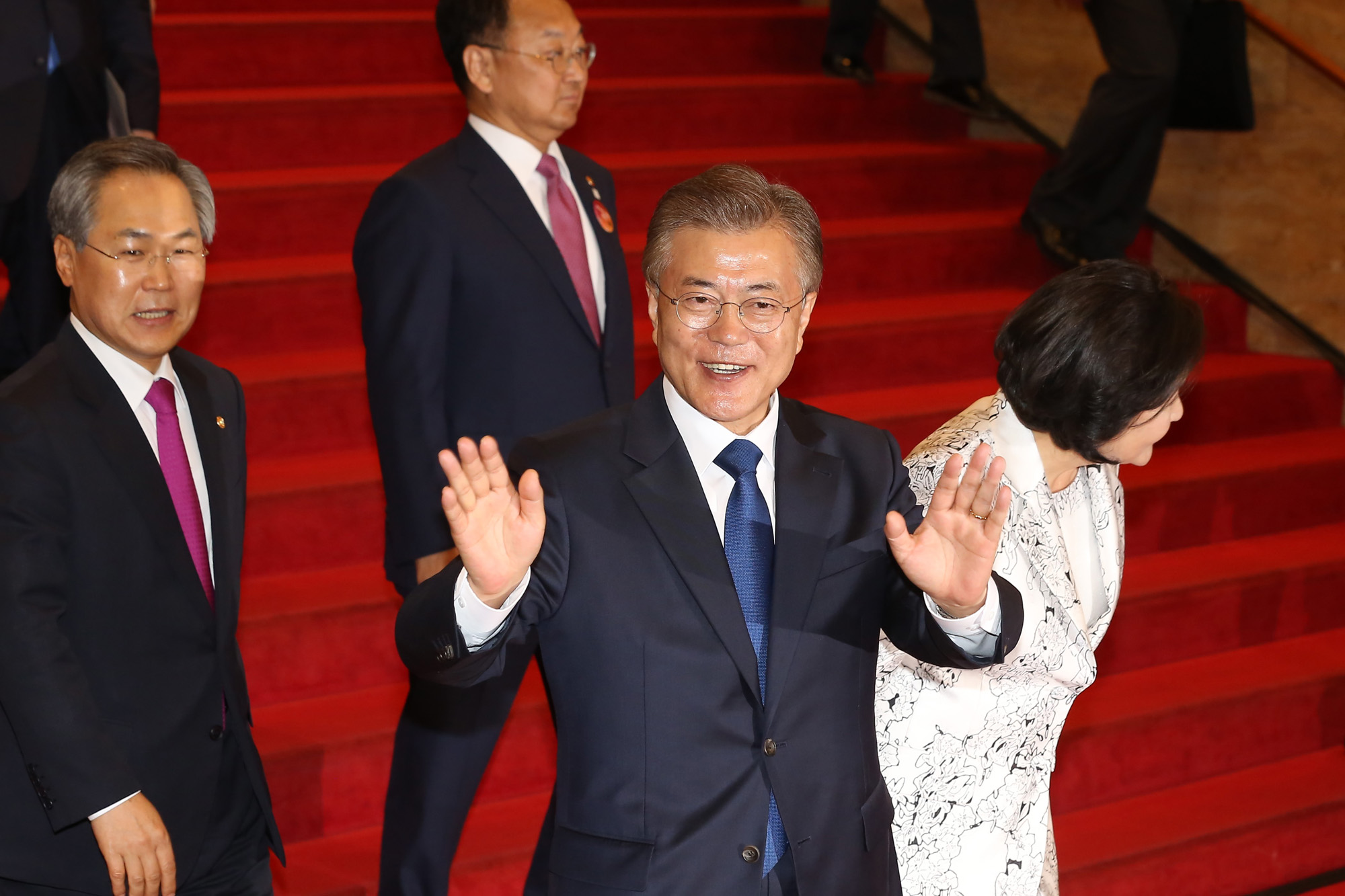 [eoimage=서울] 박은숙 기자 = 문재인 대통령과 영부인 김정숙 여사가 10일 오후 서울 여의도 국회의사당 로텐더홀에서 열린 취임식을 마친 뒤 이동하고 있다. 2017. 5. 10.eomaster@eoimage.com