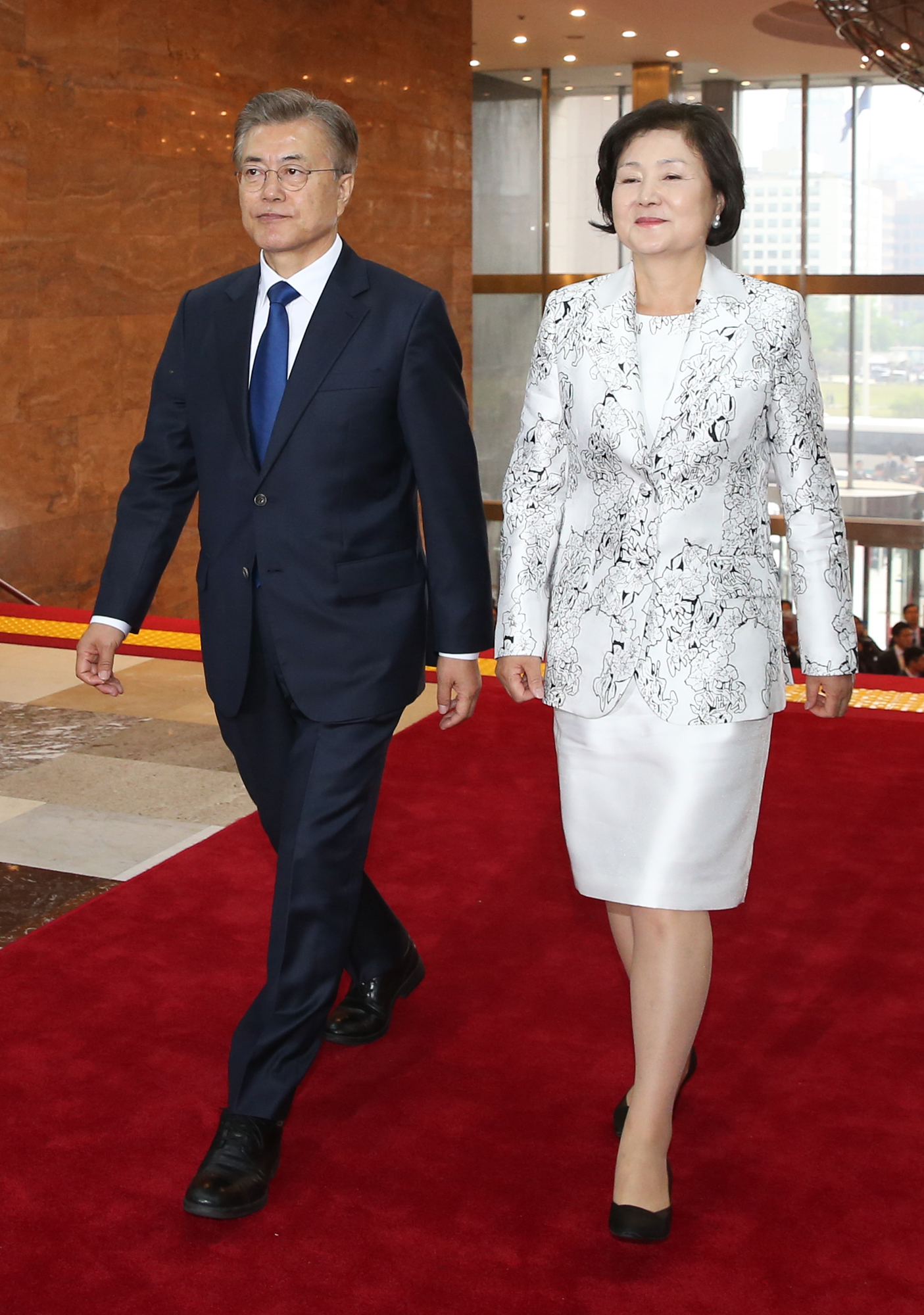 문재인 대통령과 영부인 김정숙 여사가 10일 서울 여의도 국회 본청 중앙홀에서 열린 제19대 대통령 취임식에 참석하고 있다. 2017.05.10 국회사진취재단