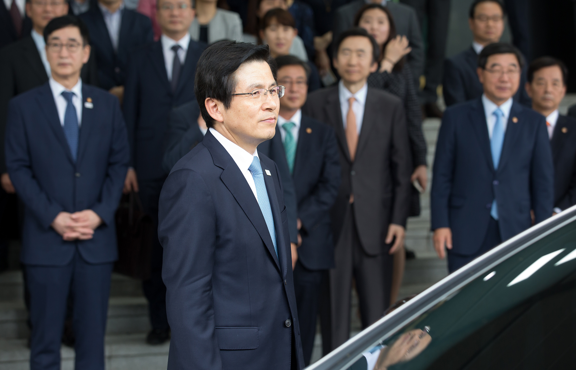 [서울=eoimage] 임준선 기자 = 사상초유의 대통령 탄핵으로 대통령 권한대행까지 했던 황교안 국무총리가 11일 오후 이임식을 갖고 퇴임했다.