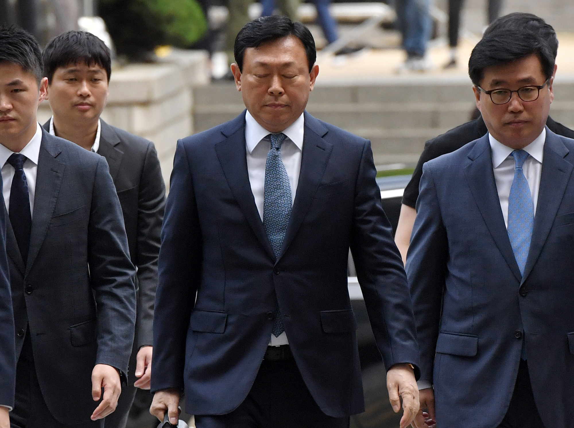 신동빈 롯데그룹 회장이 23일 오전 서울 서초구 서울중앙지법에서 열린 박근혜 전 대통령의 첫 재판에 출석하기 위해 법정으로 향하고 있다.2017.05.23