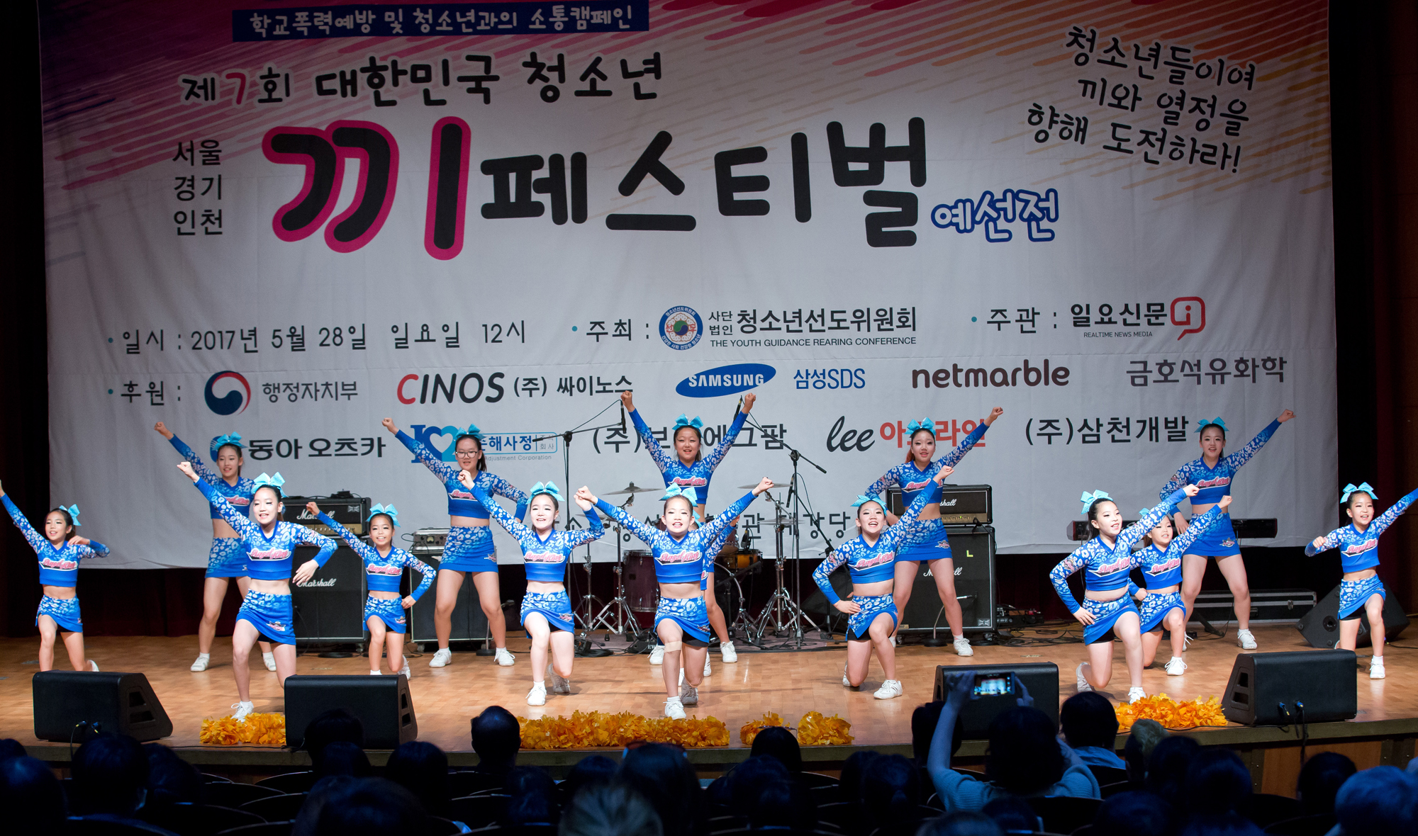 [서울=eoimage] 임준선 기자 =‘제7회 대한민국 청소년 끼 페스티벌’ 서울·경기·인천 지역예선이 28일 서울 강서구민회관 우장홀에서 열리고 있다. 사진은 중등부 대회참가자들이 공연을 하고 있다. 2017.05.28 사진/임준선기자