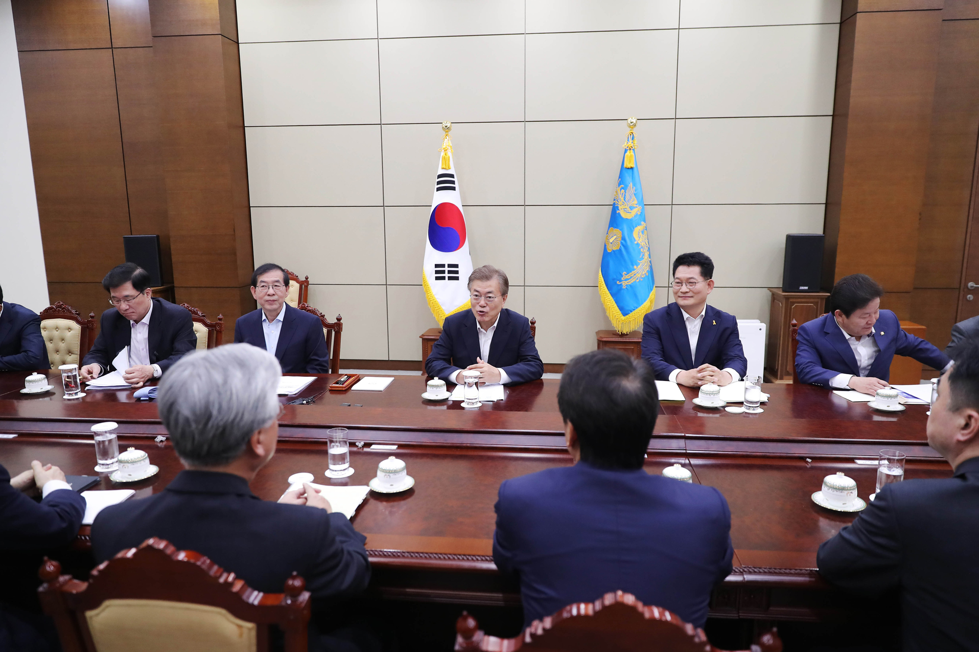 문재인 대통령이 29일 오전 청와대 여민관 소회의실에서 러시아 특사인 송영길 더불어민주당 의원과 EU 및 독일 특사 조윤제 서강대 교수, 아세안 특사 박원순 서울시장 등 특사단과 면담을 갖고 보고를 받고 있다. 2017.5.29