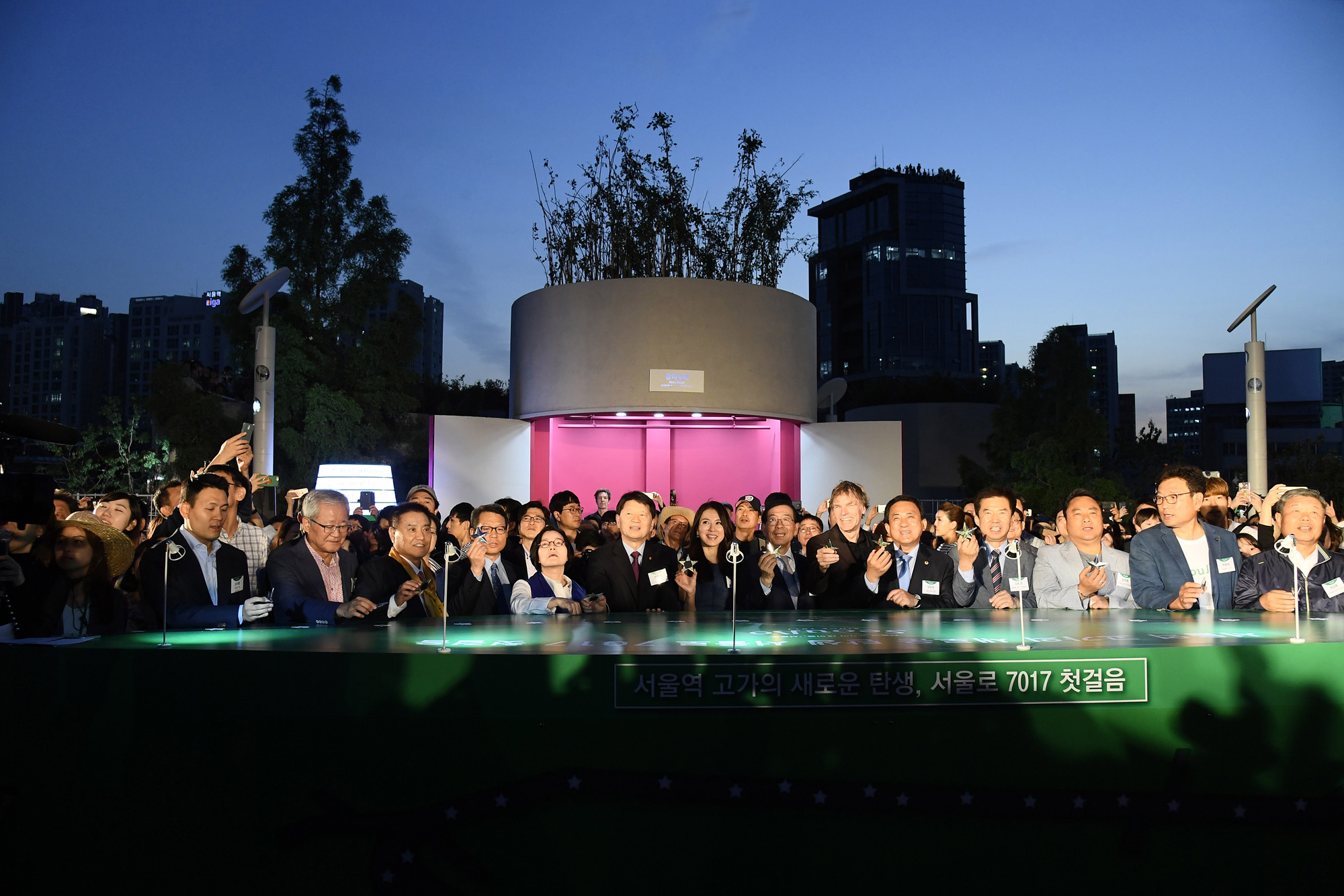 박원순 서울시장이 20일 저녁 열린 서울역 고가 보행길 '서울로 7017' 개장식에서 인사말을 하고 있다. 서울시 제공