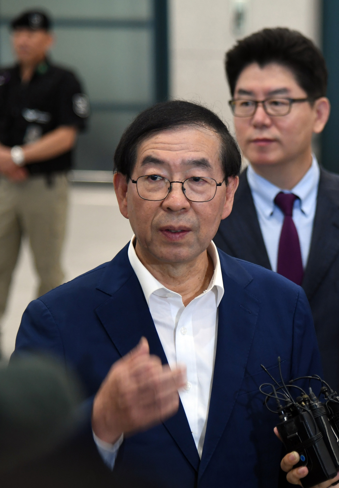 문재인 대통령의 아세안 특사인 박원순 서울시장이 26일 오후 순방 일정을 모두 마치고 인천공항을 통해 귀국하며 취재진의 질문에 답하고 있다. 서울시 제공