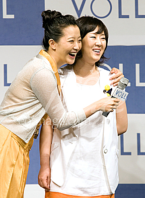 [서울=eoimage]임영무기자= 20일 서울 소공동 롯데호텔에서 열린 'VOLL 수록 아름다운 스타일 맘 김희선의 핫 썸머 아이템 패션 제안' 행사에서 김희선이 패션제안 행사에 참여한 주부와 기뻐하고 있다. 2009.04.20 eomaster@eoimage.com(끝)