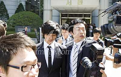 [서울=eoimage]박은숙기자=마약 투약 혐의로 불구속 기소된 배우 주지훈이 23일 오전 선고 공판에서 징역 6월에 집행유예 1년, 사회봉사 120시간을 받은 후 서초동 서울중앙지법을 나서고 있다.2009.06.23.eomaster@eoimage.com(끝)