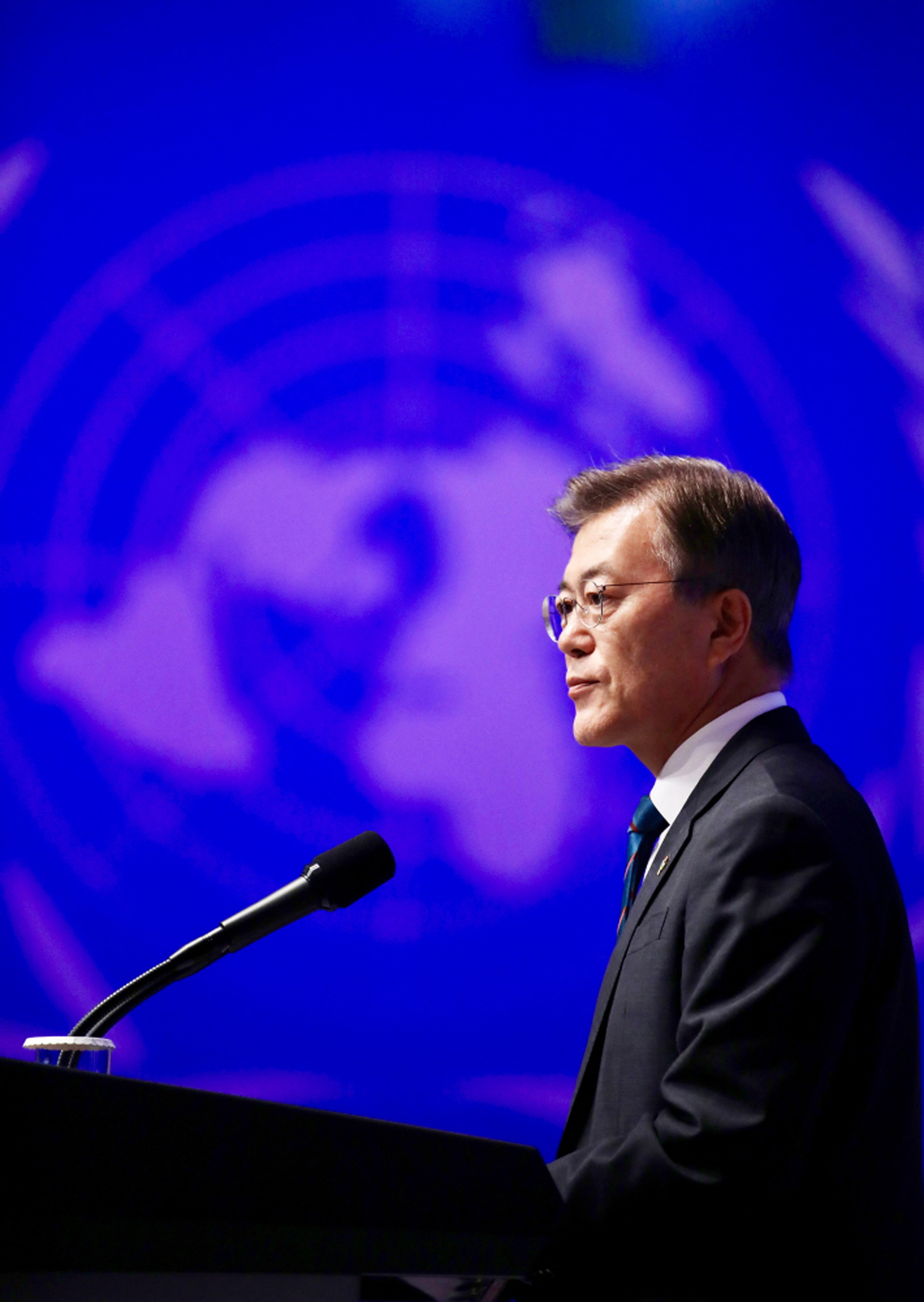 23일 오후 3시, 문재인 대통령은 서울 롯데호텔에서 열린 6.25전쟁 제67주년 국군및 UN군 참전유공자 위로연에 참석해 인사말을 하고 있다.