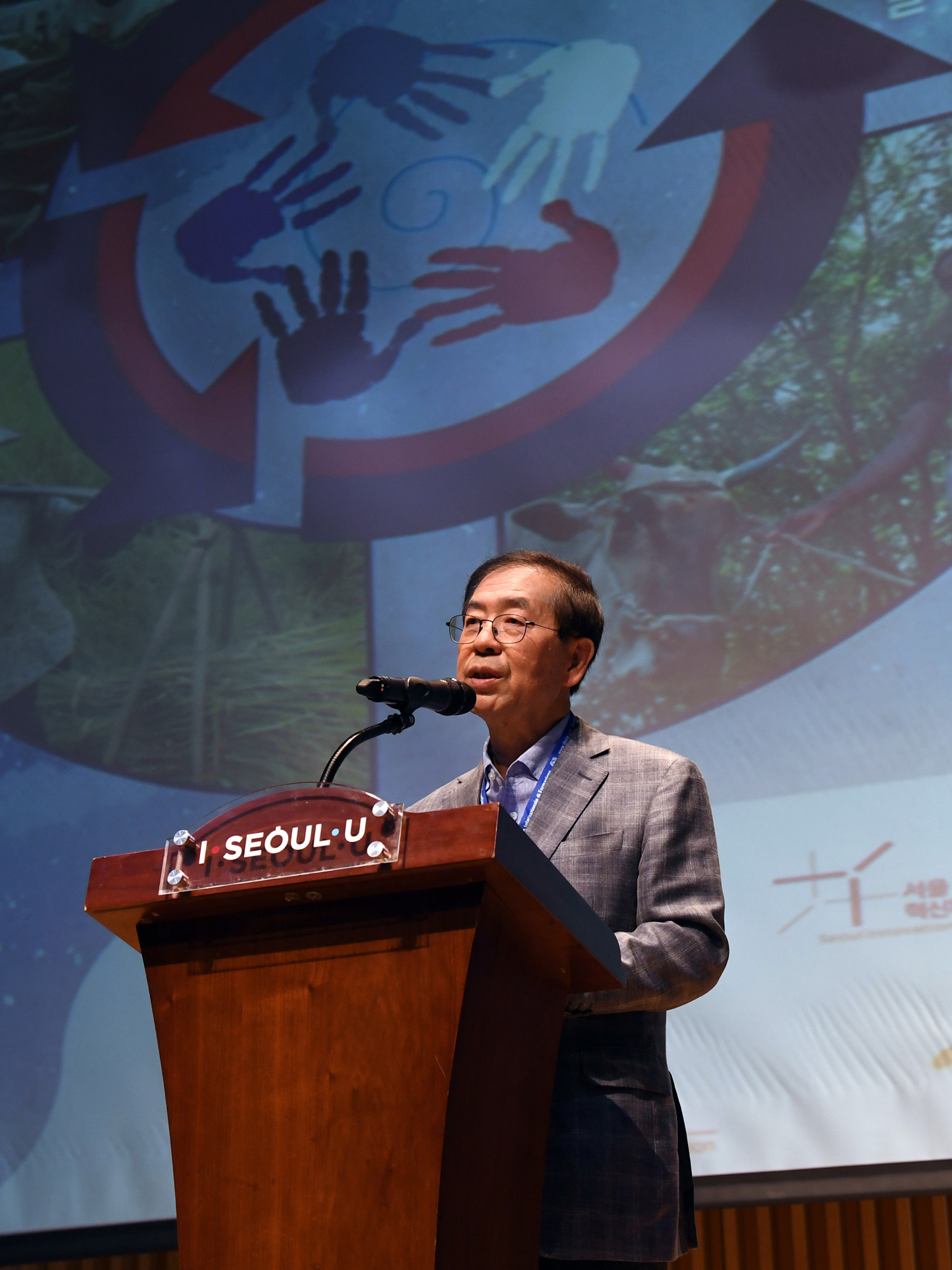 박원순 서울시장이 26일 오전 11시 시청 다목적홀에서 국내외 사회연대경제 전문가 250여명이 참석하는 ‘제8회 ILO 사회연대경제 아카데미’ 개막식에 참석하고 있다. 서울시 제공