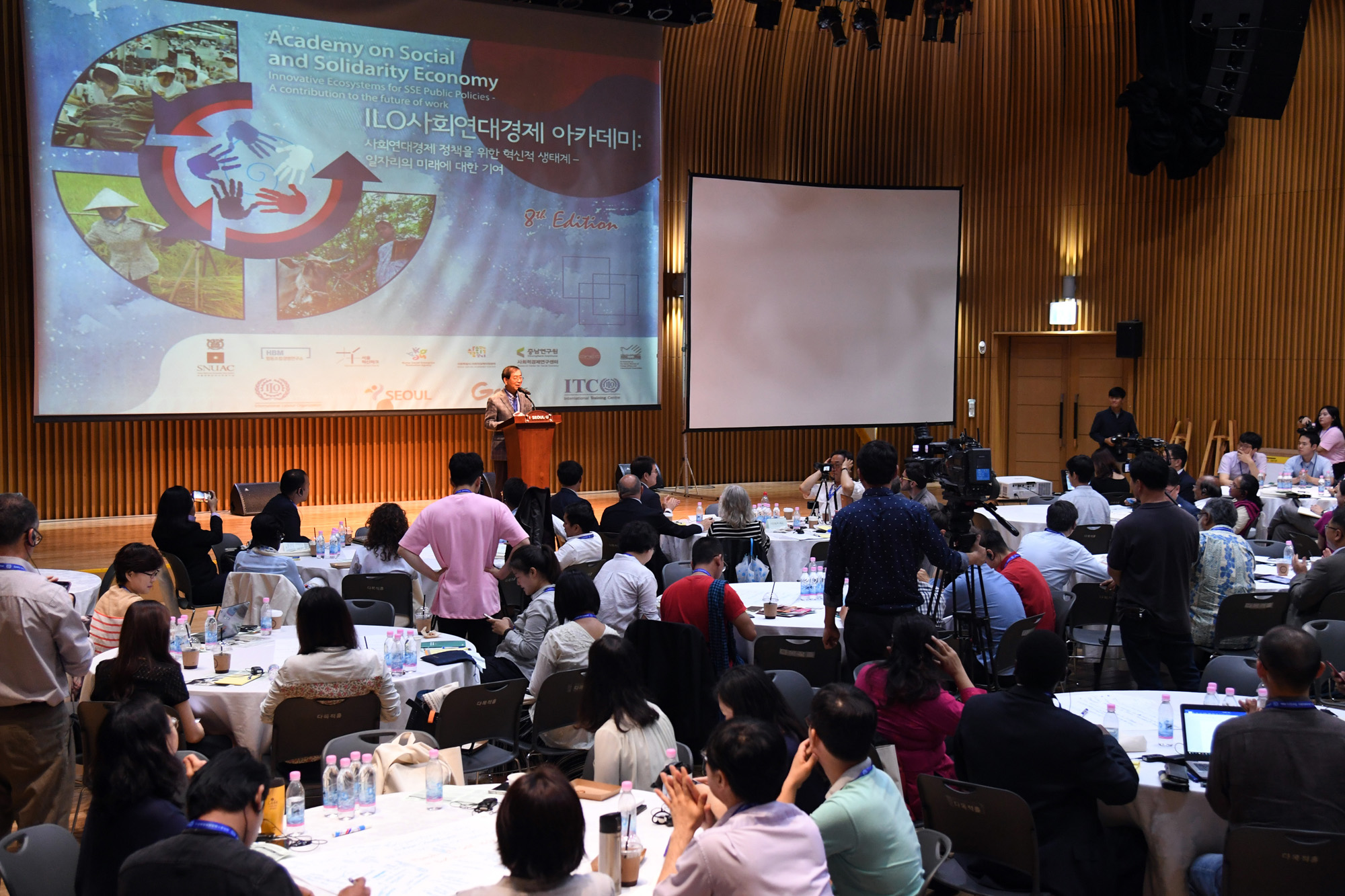 박원순 서울시장이 26일 오전 11시 시청 다목적홀에서 국내외 사회연대경제 전문가 250여명이 참석하는 ‘제8회 ILO 사회연대경제 아카데미’ 개막식에 참석하고 있다. 서울시 제공