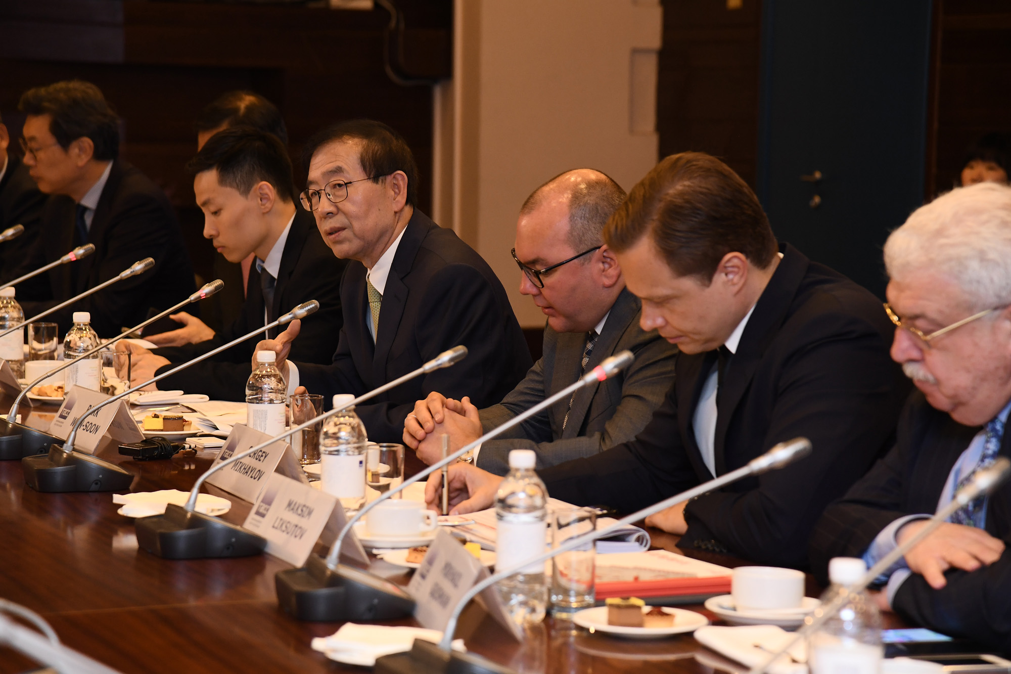 박원순 서울시장은 27일(현지시간) 러시아 모스크바에서 타스 통신사를 방문해 서울시 정책을 소개했다. 서울시 제공