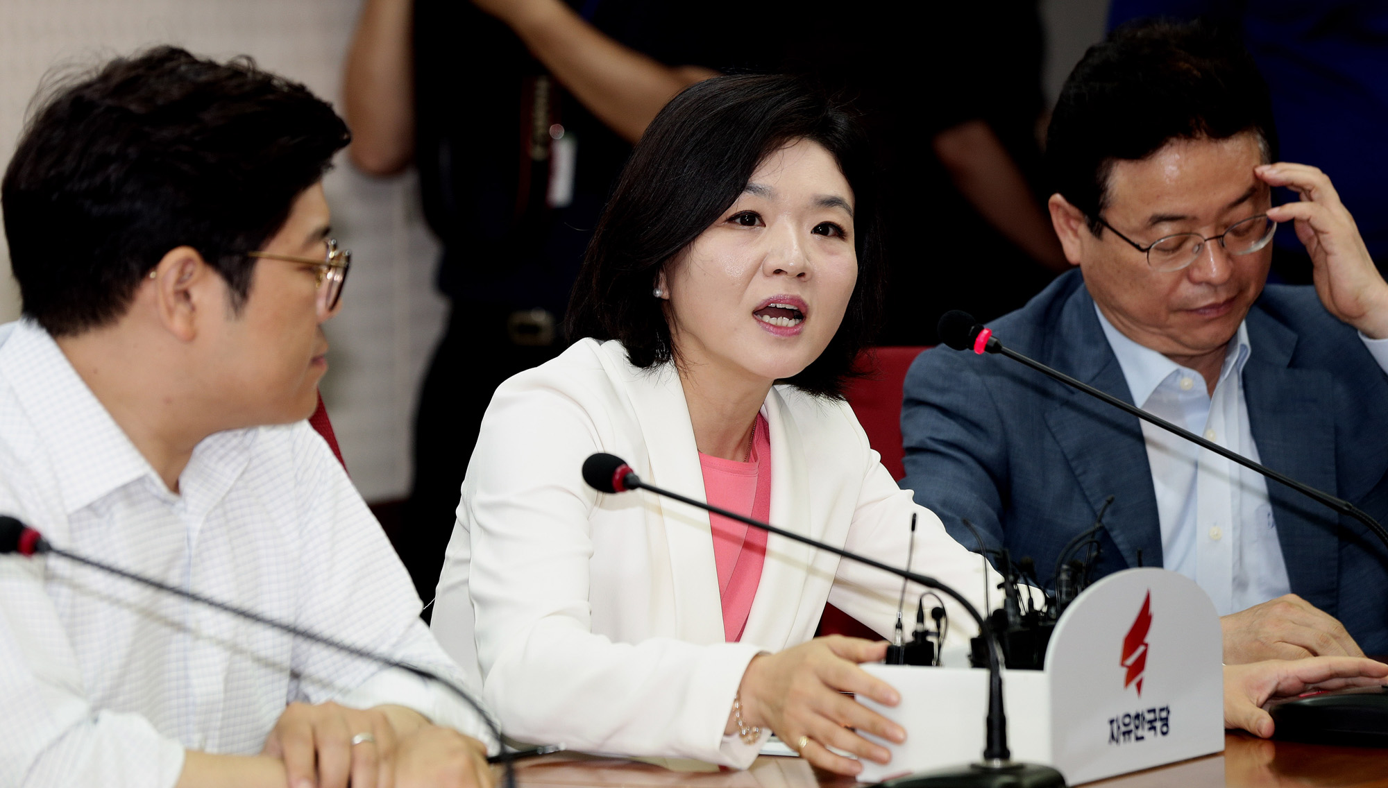 [eoimage=서울] 박은숙 기자 = 자유한국당 류여해 최고위원이 4일 오전 여의도 당사에서 열린 최고위원회의에서 모두발언을 하고 있다. . 2017.07.05 .eomaster@eoimage.com