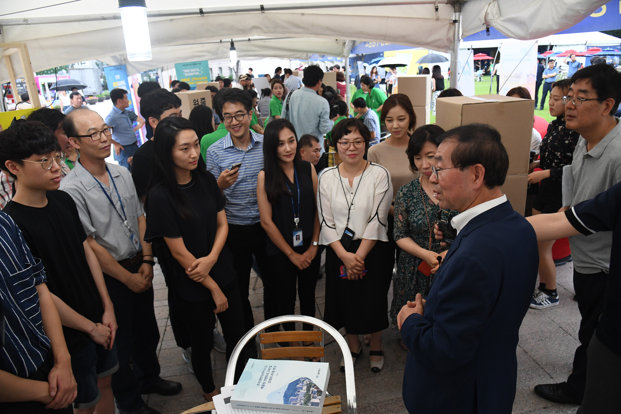 박원순 서울시장이 7일 오후 서울 중구 태평로 서울광장에서 열린 '2017 함께 서울 정책박람회'에서 인사말을 하고 있다. 서울시 제공