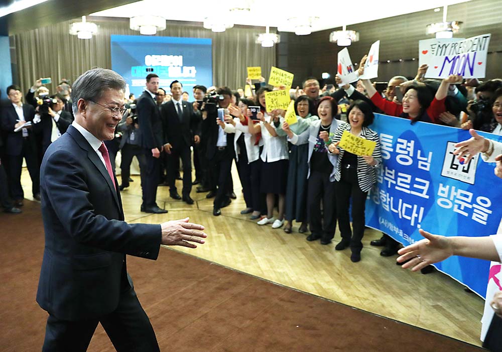 문재인 대통령이 5일(현지시간) 독일 방문 첫 일정으로 독일 베를린 하얏트 호텔에서 열린 동포 오찬 간담회에 참석 하고 있다. 2017.7.5