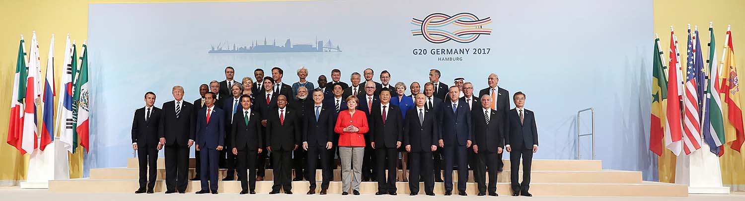 7일 오후 독일 함부르크에서 개막한 G20참석한 정상들이 회의에 앞서 기념촬영을 하고 있다. 2017.07.07 사진/ 청와대제공