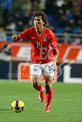 [서울=Eoimage] 임영무 기자 = 북한과의 아시아지역 최종예선을 앞두고 28일 저녁 수원월드컵 경기장에서 벌어진 한국과 이라크와의 평가전에서 김동진이 볼을 드리블하고 있다. 2009.03.28 eomaster@eoimage.com(끝)