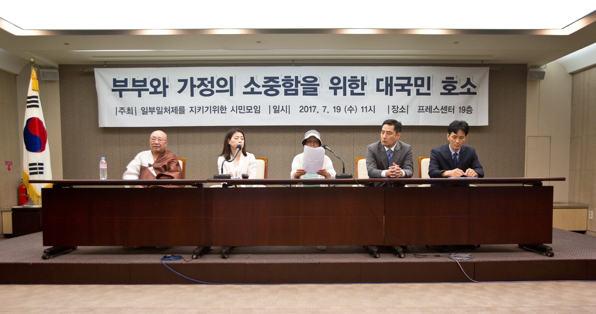 | 사진설명 | [서울=eoimage] 고성준 기자 = 19일 서울 프레스센터에서 일부일처제를 지키기 위한 시민모임 주최로 열린 기자회견에서 정지영 일부일처제를 지키기 위한 시민모임 공동대표가 발언하고 있다. 기자회견에 참석한 SK 최태원 회장의 피고소인들은 '최회장의 불륜행위에 울컥하는 마음에서 댓글을 달았다'며 성명서를 통해 최회장의 고소 취소 등을 요구했다. 2017.7.19 eomaster@eoimage.co.kr |
