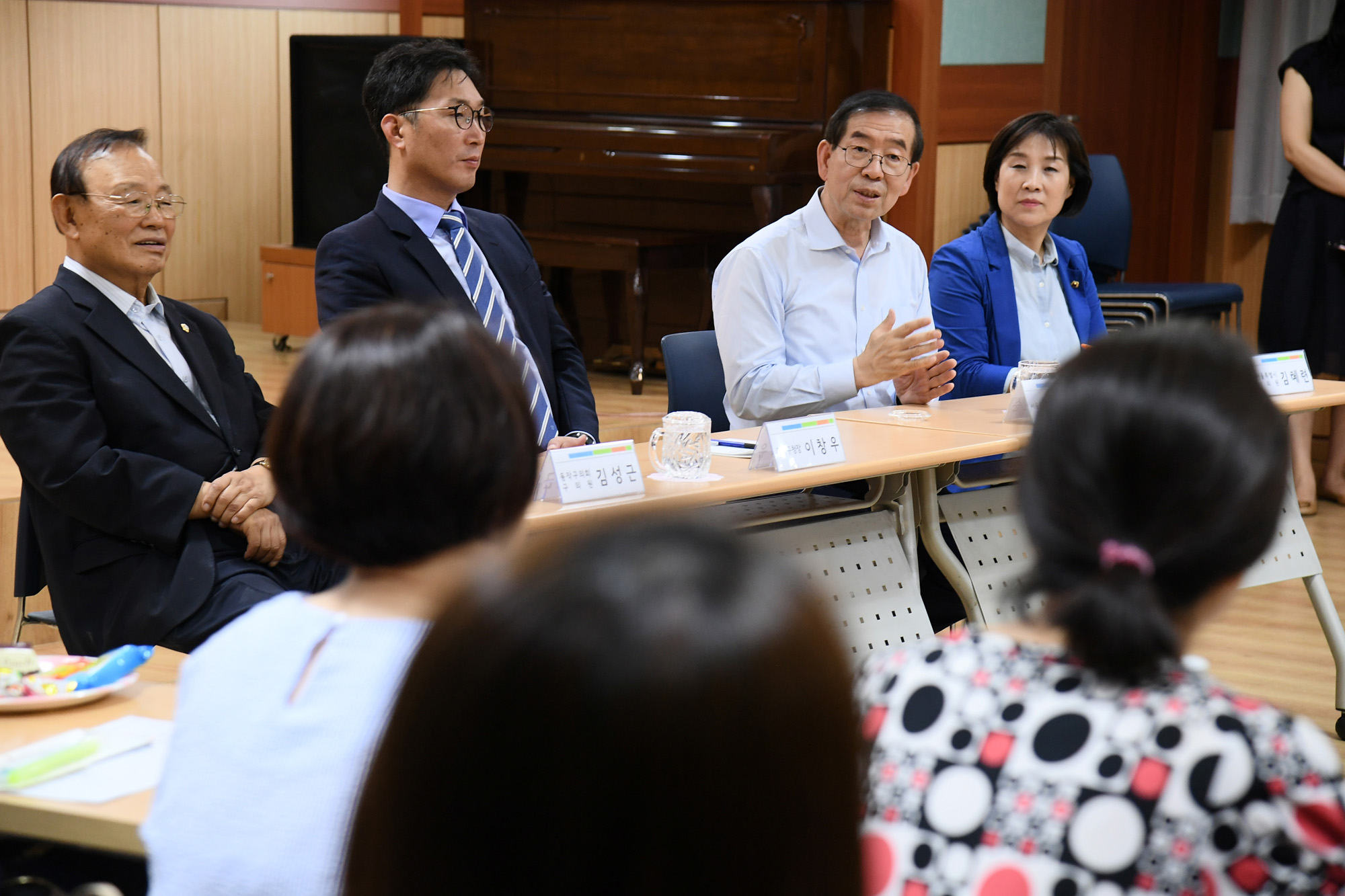 박원순 서울시장이 20일 서울 동작문화복지센터를 방문해 관계자들에게 종합행정타운 건립 예정지 설명을 듣고 있다. 서울시 제공