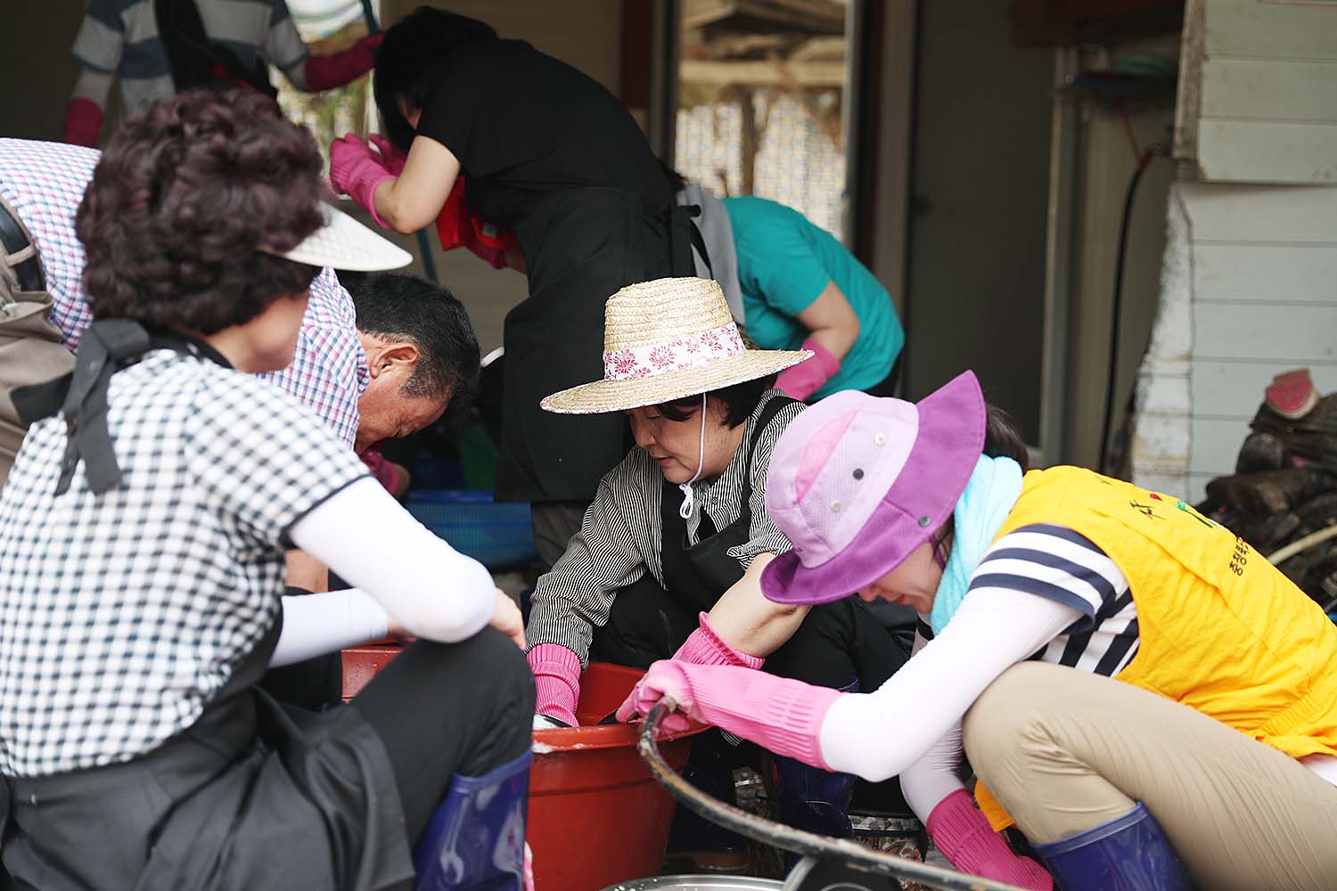김정숙여사는 21일오전 폭우피해로 어려움을 겪고 있는 충북 청주시 상당구 미원면 운암2리 청석골 마을을 찾아 가재도구 정리와 세탁물 건조 작업에 힘을 보탰다. 2017.07.21 사진/ 청와대제공