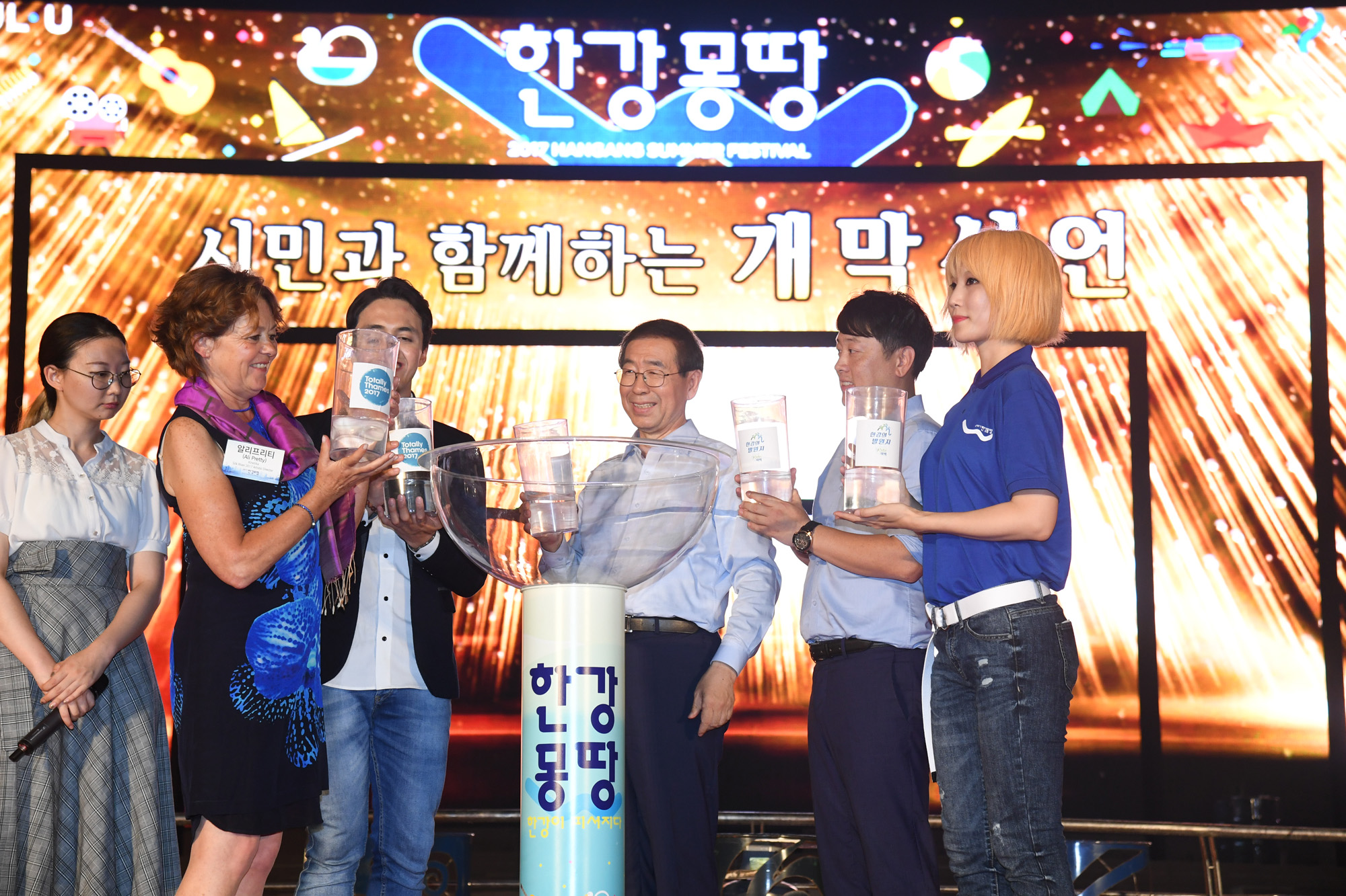 박원순 서울시장이 21일 서울 반포한강공원에서 열린 2017 한강몽땅 여름축제 개막식에서 축사를 하고 있다. 서울시 제공