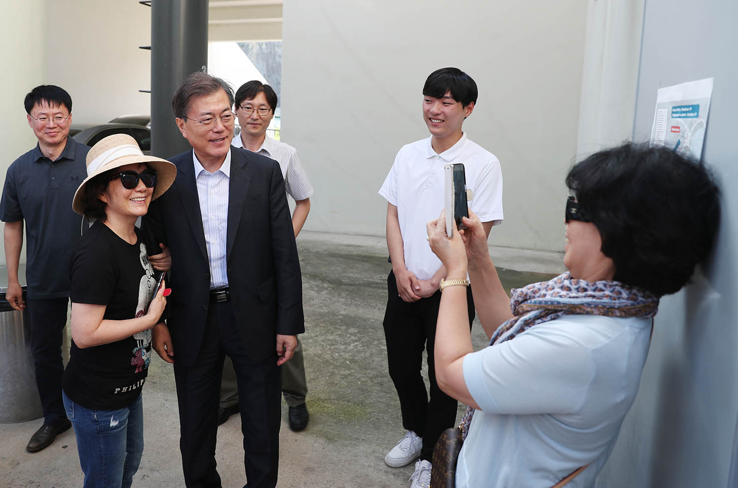 문재인대통령은 휴가 첫날인 30일 오후 평창 올림픽 스키점프대를 방문했다. 현장에는 문화부 노태강 차관과 이희범 평창올림픽 조직위원장이 함꼐 했다. 스키점프대를 방문한 시민들과 기념사진을 찍고 있는 문재인 대통령.