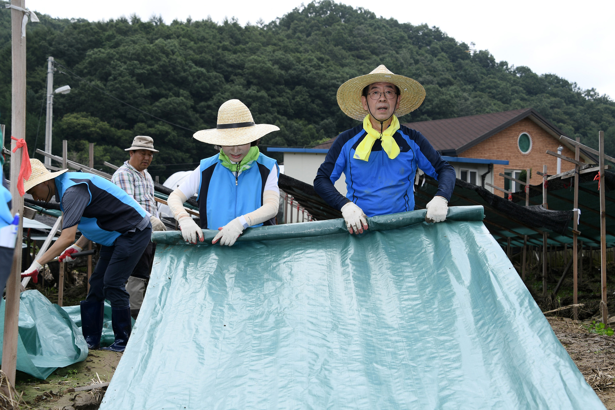 박원순 서울시장과 서울시 공무원, 시 자원봉사자 등 310여명이 집중호우로 큰 피해가 난 충북 괴산군 청천면 일원에서 30일 복구작업을 도왔다. 서울시 제공
