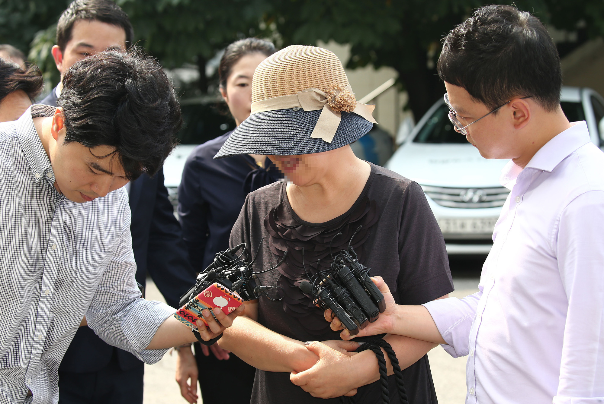 사병들에 대한 갑질 혐의로 고발된 박찬주 육군대장의 부인 전모씨가 참고인 자격으로 8월 7일 오전