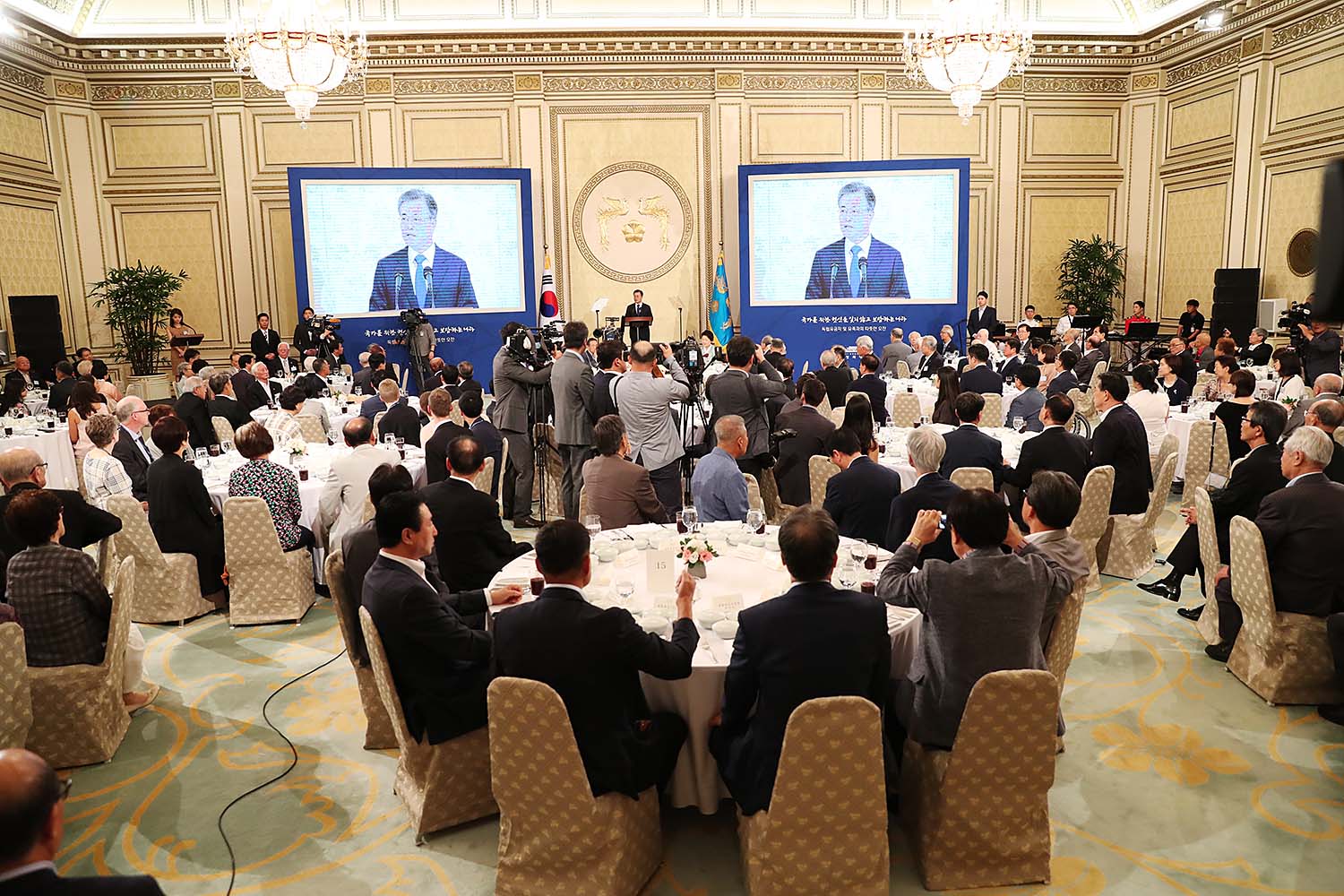 문재인 대통령이 14일 청와대 영빈관에서 열린 독립유공자 및 유족 오찬에 참석하고 있다