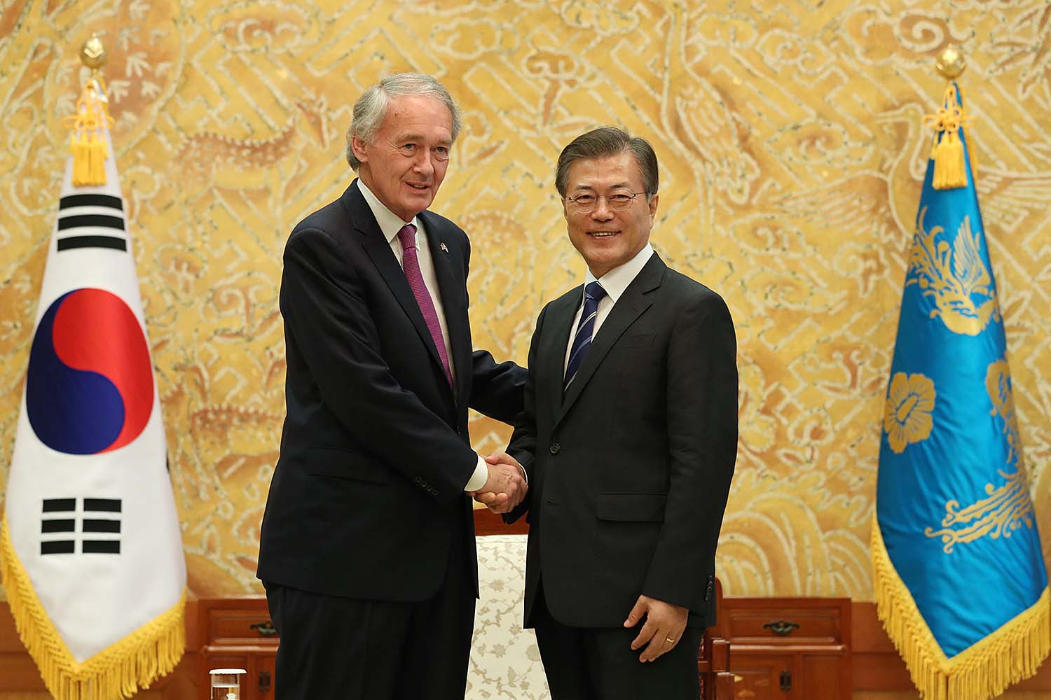 문재인 대통령이 21일 오후 청와대 본관에서 미국 상원 외교위원회 동아태소위 에드워드 마키 단장 등 대표단을 접견하고 있다.