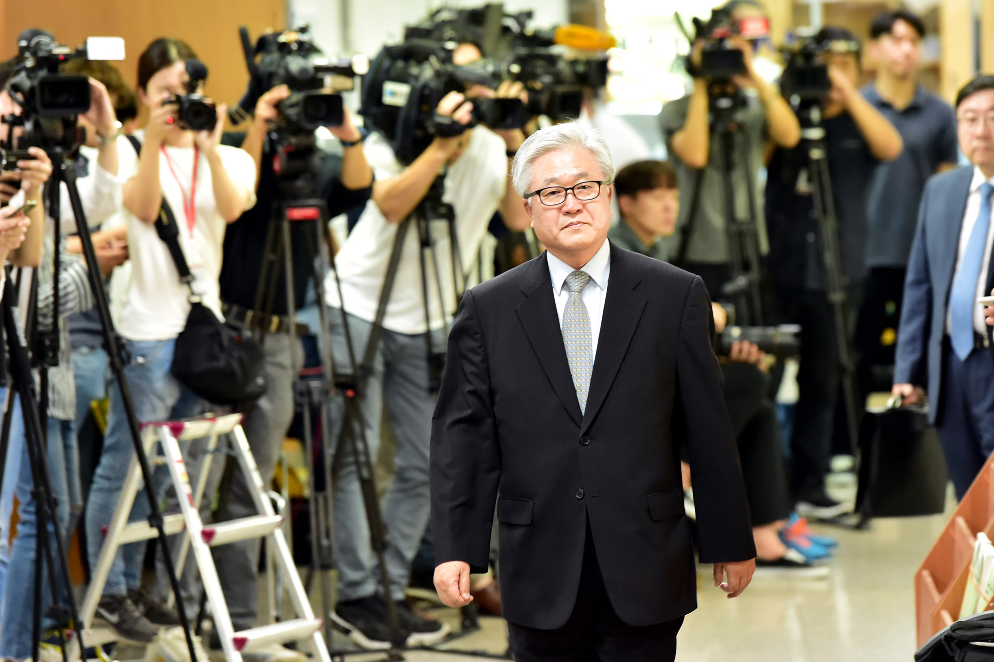 박상진 전 삼성전자 사장이 25일 서울 서초동 서울중앙지법에서 열린 이재용 1심 선고공판에 출석하고 있다. 2017.08.25