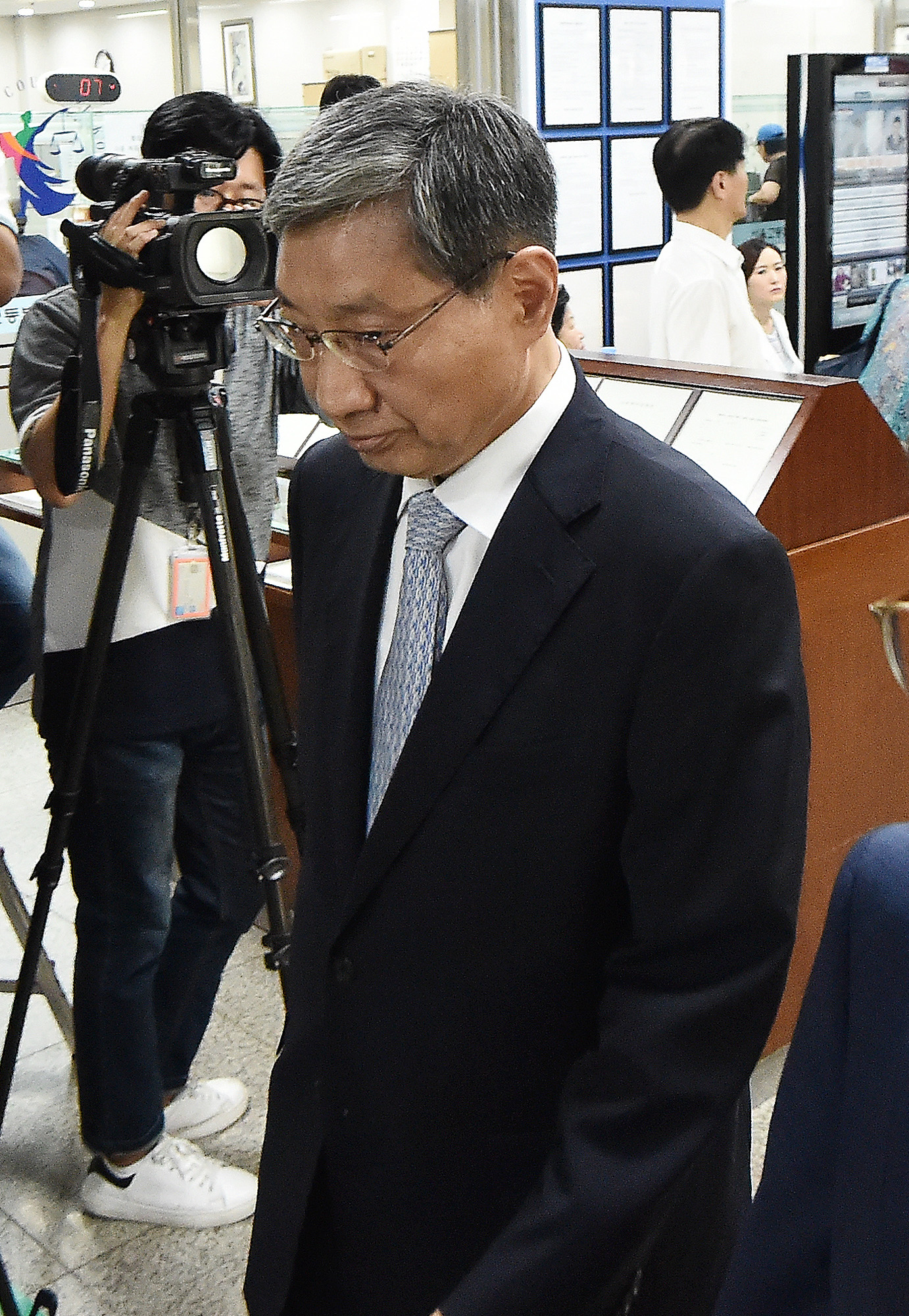 장충기 전 삼성 미래전략실 차장이 25일 서울 서초동 서울중앙지법에서 열린 이재용 1심 선고공판에 출석하고 있다. 2017.08.25