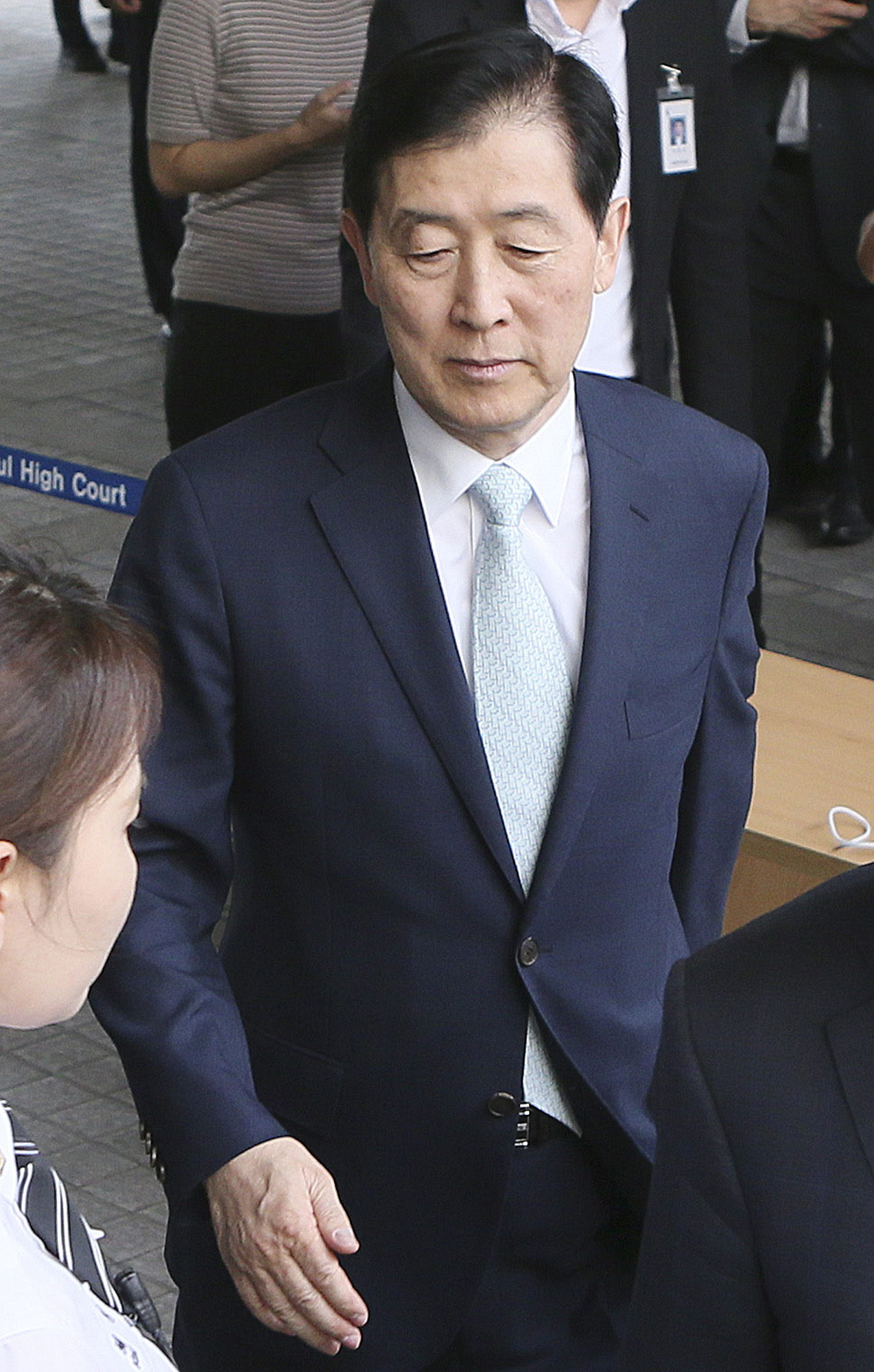 최지성 전 삼성 미래전략실장이 25일 서울 서초동 서울중앙지법에서 열린 1심 선고공판에 출석하고 있다. /이형석 기자 leehs@