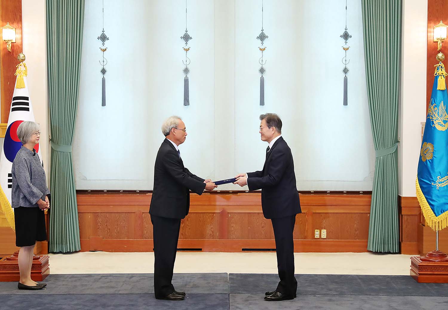 문재인 대통령은 29일 김덕룡 민주평화통일자문회의 수석부의장 등 대통령 직속 위원회 위원장들에게 임명장을 수여했다.