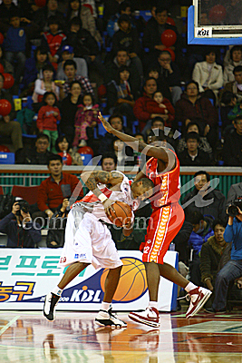 [서울=eoimage]박은숙기자=15일 오후 잠실학생체육관에서 열린 2008-2009 동부프로미 프로농구 정규리그 서울 SK-울산 모비스경기에서 SK의 섀넌 선수가 수비수를 피해 공격을 하고 있다.2009.02.15 eomaster@eoimage.com(끝)