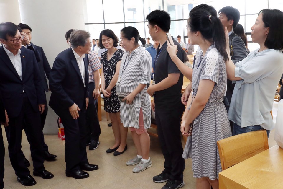 문재인 대통령은 31일 정부세종청사에서 다자녀 공무원들과 점심식사를 함께 하고 있다.