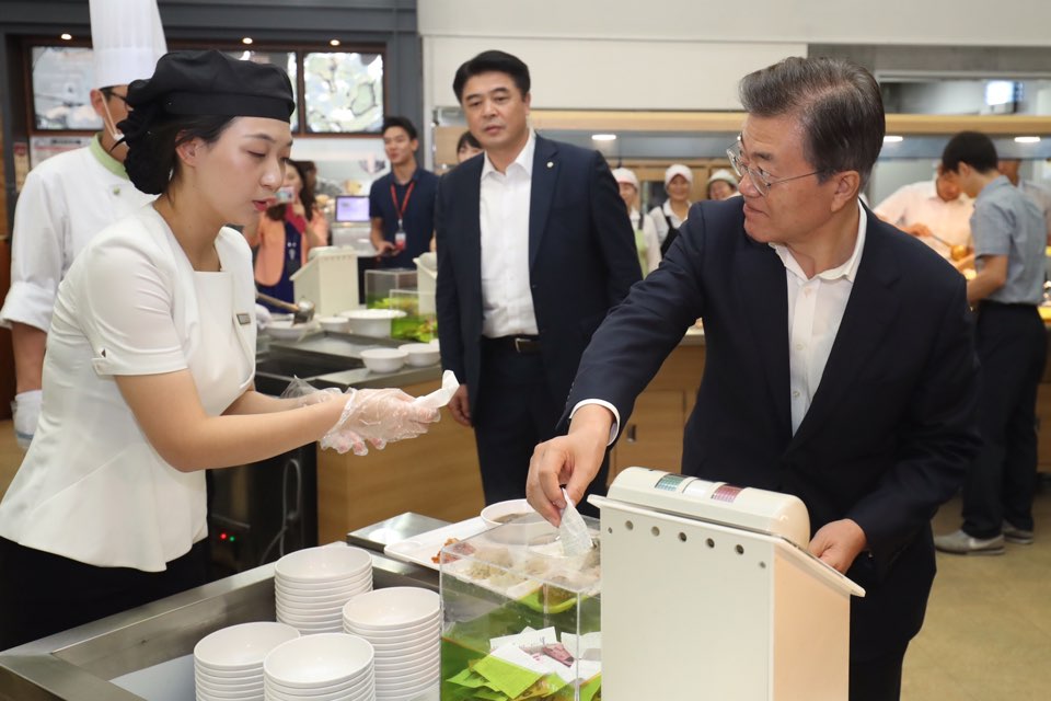 문재인 대통령은 31일 정부세종청사에서 다자녀 공무원들과 점심식사를 함께 하고 있다.