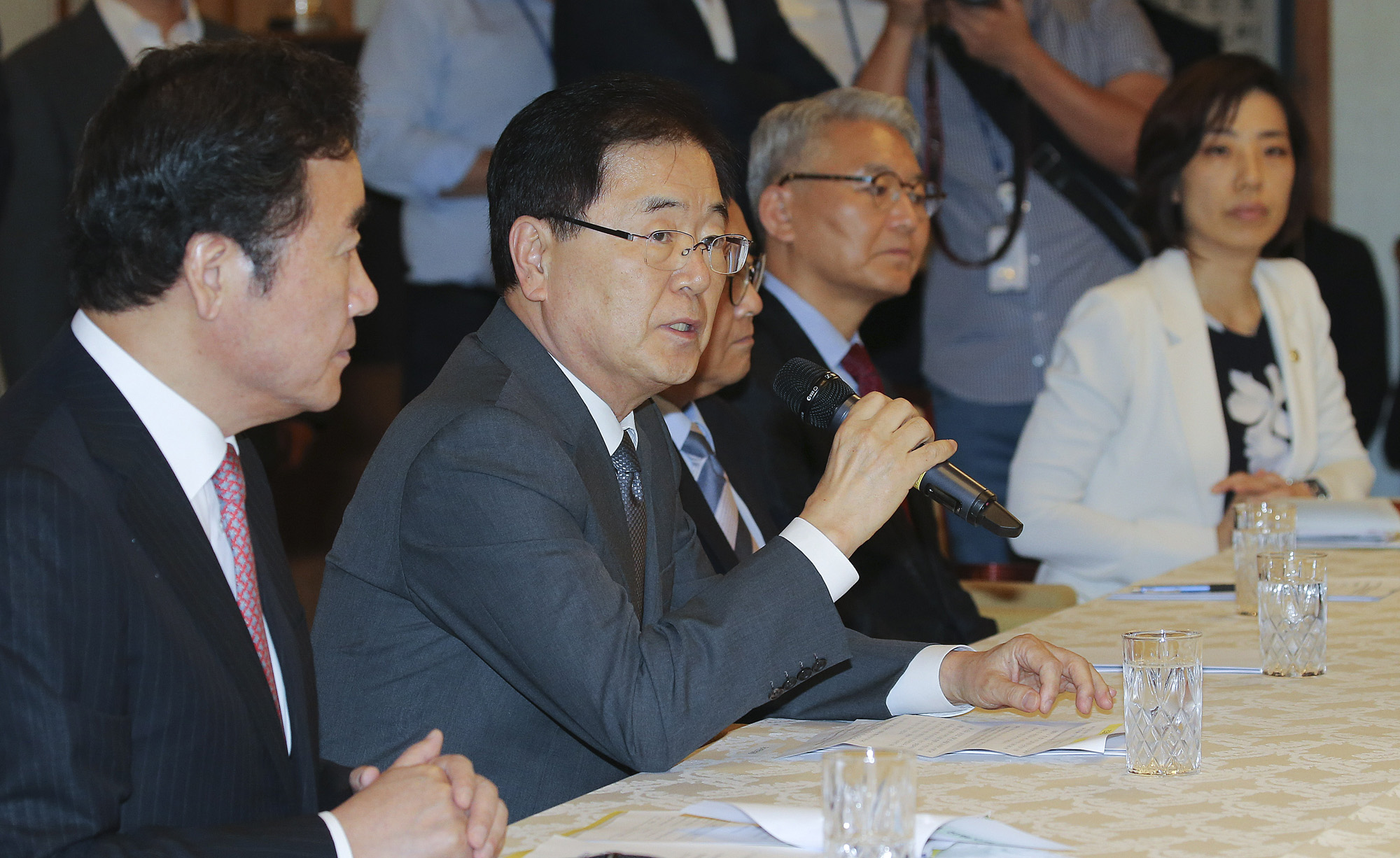정의용 청와대 국가안보실장이 5일 오후 서울 종로구 총리공관에서 열린 긴급 안보 당·정·청 회의에서 모두발언을 하고 있다.