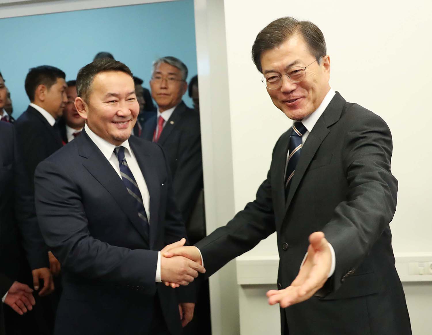 문재인 대통령은 이날 블라디보스톡에서 열리는 동방경제포럼 참석을 계기로 러시아를 방문해 블라디미르 푸틴 러시아 대통령과 정상회담을 가진 뒤 연이어 한-몽골 정상회담을 가졌다.