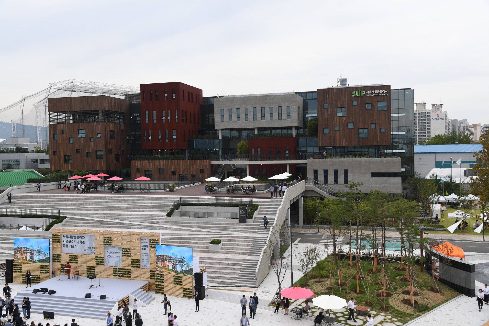 박원순 서울시장이 5일 오전 서울 성동구 용답동 중랑물재생센터 부지에서 열린 서울새활용플라자 개관식에서 축사를 하고 있다. 서울시 제공