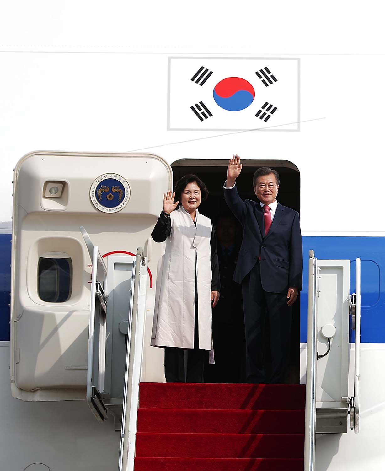 문재인 대통령 내외가 18일(한국시간) 오후 서울공항을 통해 미국 뉴욕으로 출국하고 있다.