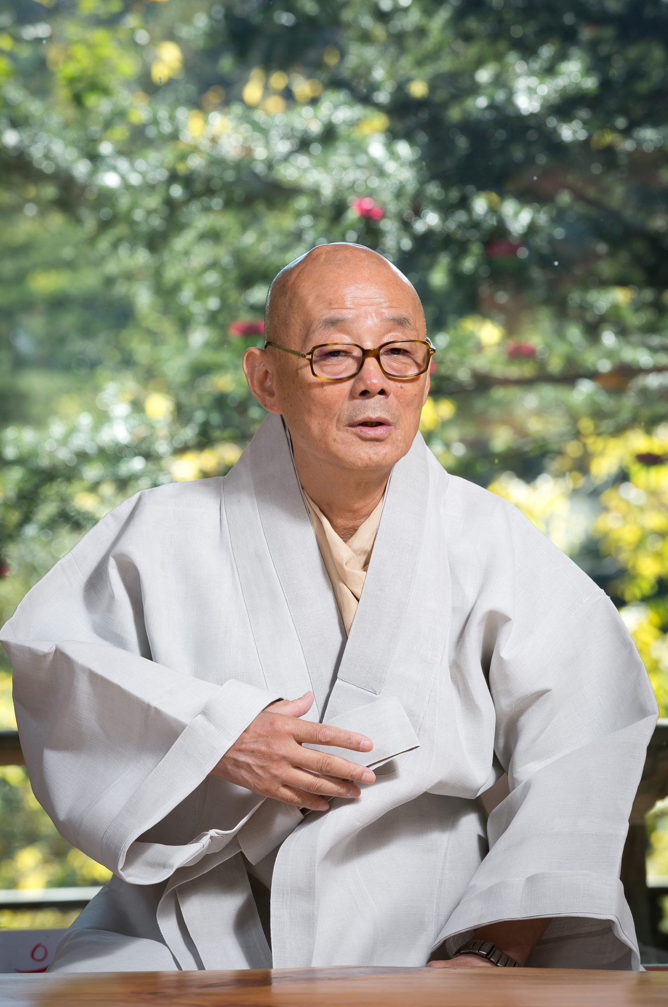 [평창=eoimage] (시사저널) 임준선 기자 = 21일 강원도 평창 월정사 에서 명진스님이 시사저널과 인터뷰를 하고 있다.
